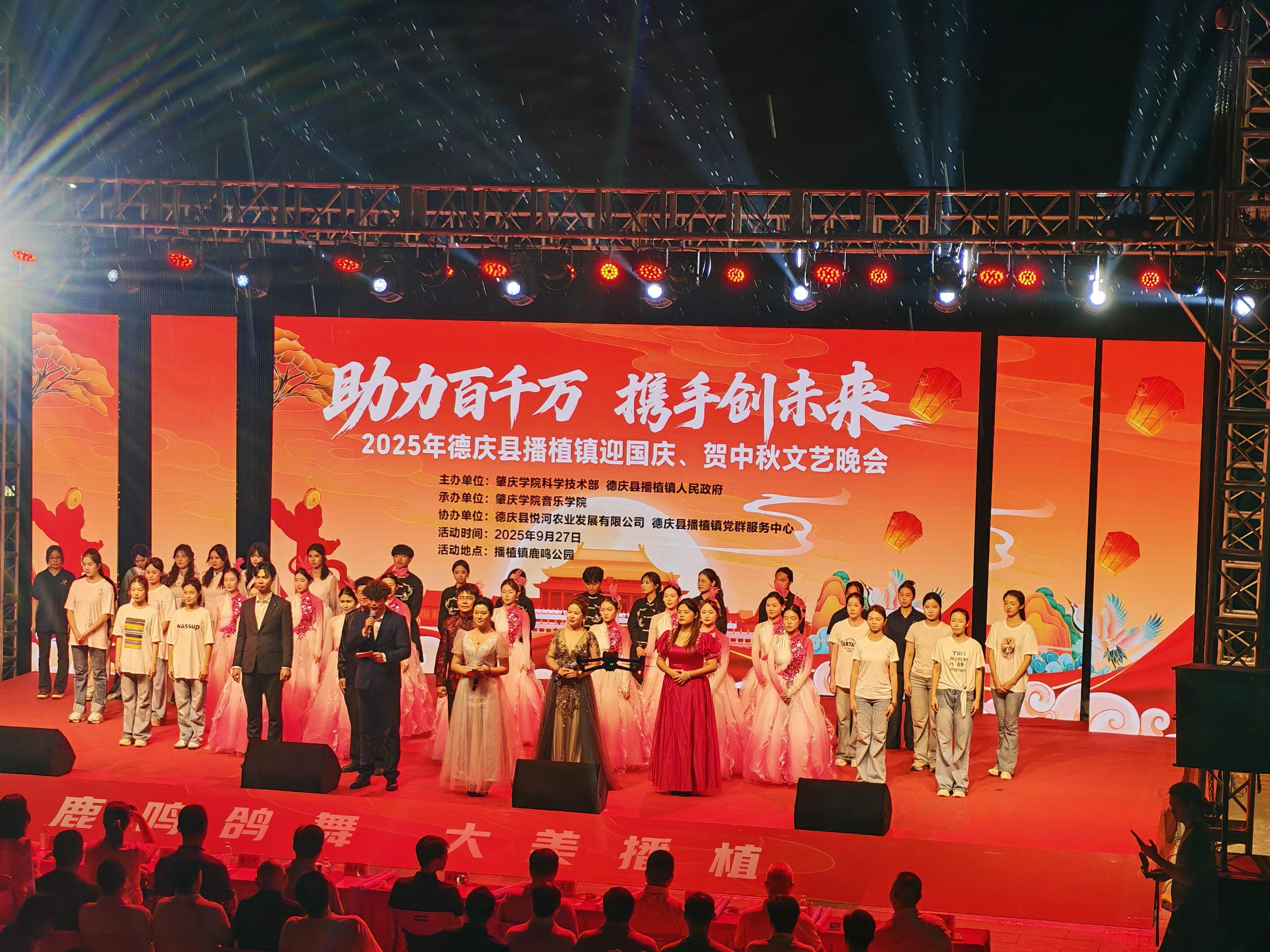2025年9月27日,williamhill威廉希尔官网与德庆县播植镇人民政府在播植镇共同主办主题为“助力百千万 携手创未来”德庆县播植镇迎国庆、贺中秋文艺晚会。学校组织部、科学技术部、音乐学院等相关领导干部出席活动,德庆县政协、妇联、播植镇等主要领导参加晚会。